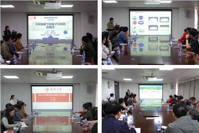 本次会议的评委分别是厦门大学林友辉教授、福州大学杨贞标教授、福建师范大学陈大钦教授与华侨大学黄志福副教授。报告内容涵盖半导体物理,软物质物理,理论物理与凝聚态物理等多种基础与交叉学科领域。论坛期间,来自各高校的13名硕博研究生进行报告和交流,与同行和专家就课题研究展开了深入的讨论,营造了热烈的学术交流氛围。据悉,本次研讨会最终评选出7个优秀报告。