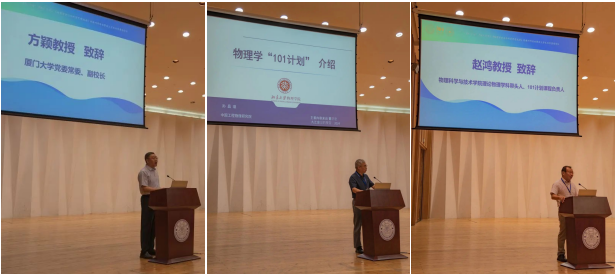 8月12日上午,由教育部物理学“101”计划秘书处、厦门大学物理科学与技术学院、中国工程物理研究院研究生院、教育部“101计划”统计力学课程虚拟教研室、教育部“101计划”物理学前沿与科学思想选讲课程虚拟教研室主办的“101计划”《热力学与统计物理》和《物理学前沿与科学思想选讲》课程教师研修班暨拔尖学生培养暑假学校在厦门大学科学艺术中心正式开幕。101计划物理学科专家组成员、中国工程物理研究院研究生院孙昌璞院士,南京大学党委常委、副校长王振林教授,南京航空航天大学副校长施大宁教授,教育部大学物理课程教指委主任、清华大学王青教授,教育部物理学类专业教指委副主任、北京大学刘玉鑫教授,教育部大学物理课程教指委副主任、南京大学王炜教授,厦门大学党委常委、副校长方颖教授,厦门大学教务处副处长何海涛,101计划课程负责人、物理科学与技术学院赵鸿教授,厦门大学物理科学与技术学院副院长陈理想教授、副院长吴顺情教授等国内外高校的专家学者及师生代表参加了开幕式。开幕式由厦门大学教务处王程处长主持。