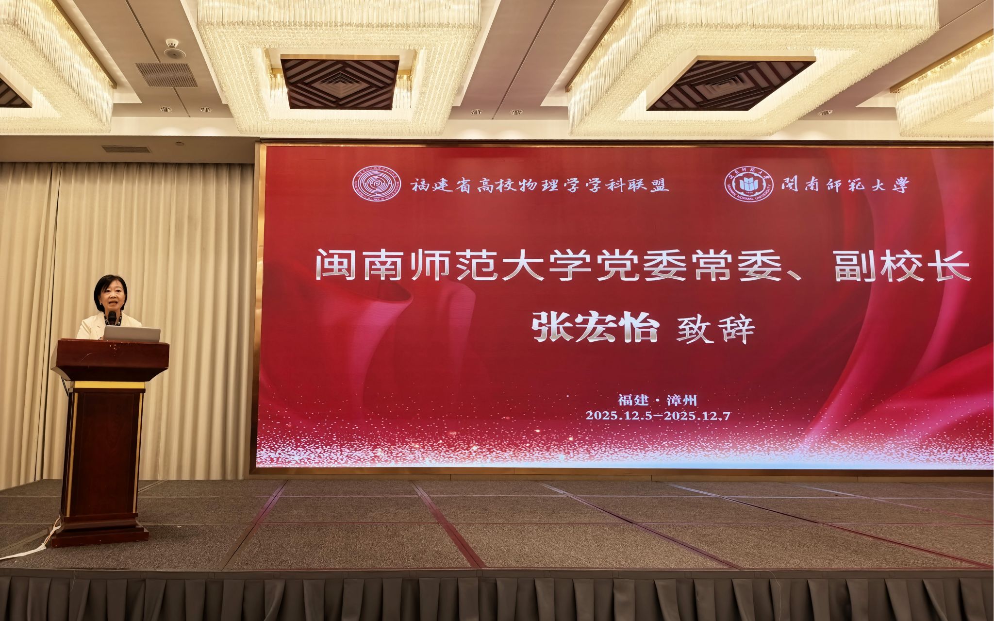 张宏怡在致辞中指出,在科技竞争日趋激烈的时代,夯实物理学等基础学科具有重要的战略意义。福建省高校物理学学科联盟在学术交流、科研合作等方面成果丰硕,为科教事业作出了重要贡献。本次年会旨在搭建高水平交流平台,为学科高质量发展注入新活力。学校将继续支持联盟工作,愿与各位携手,共同推动物理学学科的繁荣,为科技自立自强贡献力量。